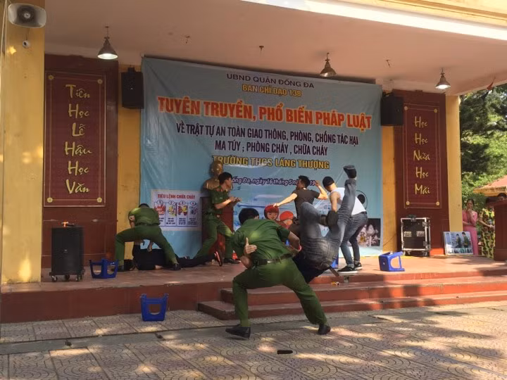 Cô giáo Lê Thị Thanh Tâm, Hiệu trưởng Trường THCS Láng Thượng chia sẻ, buổi tuyên truyền này có ý nghĩa rất thiết thực trong bối cảnh ma túy đang len lỏi vào nhiều trường học và tình trạng vi phạm Luật giao thông, cháy - nổ diễn ra thường xuyên.
