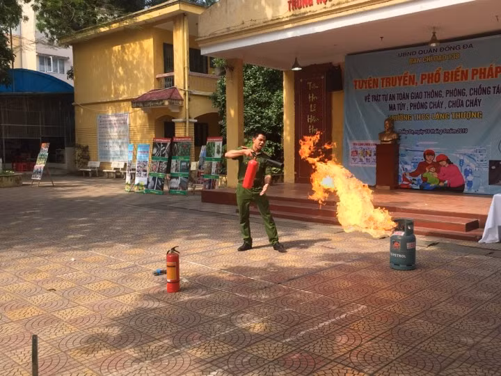 Bên cạnh đó, CAQ Đống Đa và Phòng Cảnh sát giao thông CATP Hà Nội đã truyền đạt đến học sinh trường THCS Láng Thượng các nội dung về quy định khi tham gia giao thông, quy định chấp hành việc đội mũ bảo hiểm khi ngồi trên xe mô tô, xe gắn máy, các nguyên tắc khi xảy cháy, cách sử dụng bình chữa cháy, cách thoát nạn....