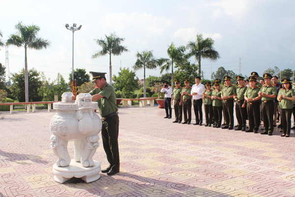 Đoàn công tác Cụm thi đua số 1 CATP Hà Nội dâng hương tại khu "Long An trung dũng kiên cường, toàn dân đánh giặc"...