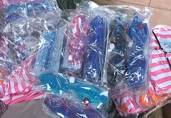 Theo hồ sơ kiểm đếm, số hàng trên bao gồm 960 đôi vợt cầu lông, 720 chiếc kính và gần 1.100 bộ quần áo của trẻ em, 800 chiếc khăn quàng cổ nữ, 2.800 đôi tất và 156 đôi giầy của nữ, 400 quyển sổ tay, 20 chiếc váy cưới, 160 đôi giày nam và 1.594 mét vải… Tổng số tiền trị giá gần 400 triệu đồng.