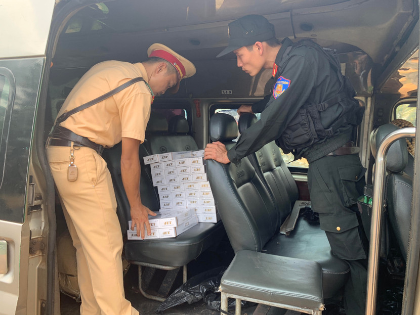 Cơ quan công an kiểm tra số thuốc lá lậu trên xe ô tô