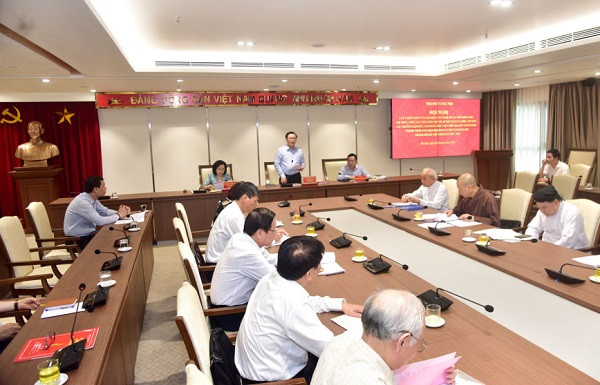 Sáng nay, 5-6, Thành ủy Hà Nội tổ chức hội nghị lấy ý kiến của đại diện văn nghệ sỹ, các nhà khoa học, trí thức, chức sắc tôn giáo của Thủ đô; Bí thư Đảng ủy, Hiệu trưởng các Trường Đại học, Cao đẳng, Học viện trên địa bàn Thành phố vào dự thảo báo cáo chính trị Đại hội Đảng bộ thành phố lần XVII.