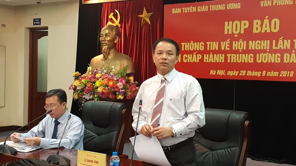 Phó Chánh Văn phòng Trung ương Đảng Lê Quang Vĩnh thông tin tại buổi họp báo