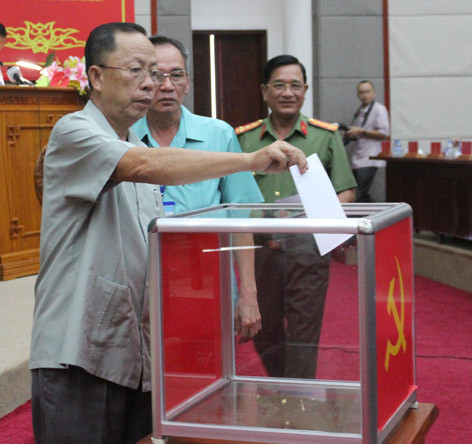 Cán bộ chủ chốt của tỉnh Hậu Giang bỏ phiếu giới thiệu nhân sự cho chức danh Bí thư Tỉnh ủy (Ảnh: Báo Hậu Giang)