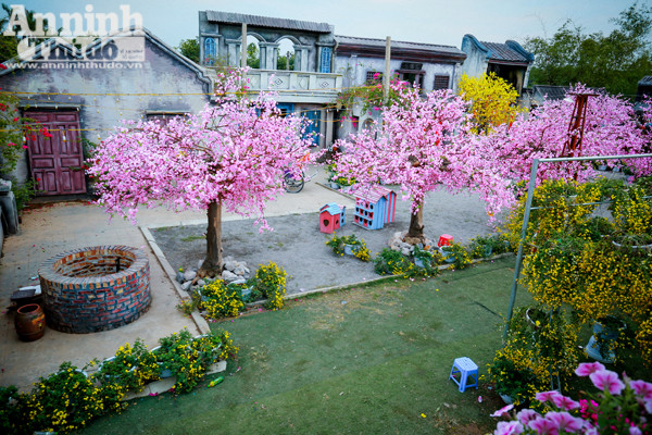 ...thì những gốc đào Nhật Tân cũng được bứng về đây khoe sắc.