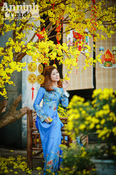 Áo dài, cúc vàng, mai vàng...tất cả như đang tranh nhau khoe sắc cùng thiếu nữ...