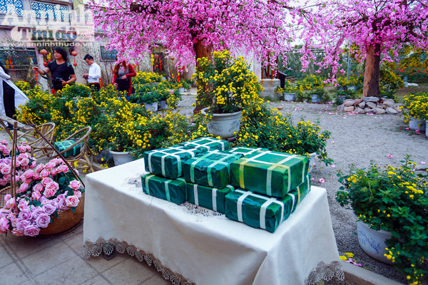 Để tạo không khí xuân, những chiếc bánh chưng xanh giả được khéo léo bày trong bối cảnh hết sức đẹp mắt... mọi thứ như hòa quyện báo hiệu một mùa xuân đang về.