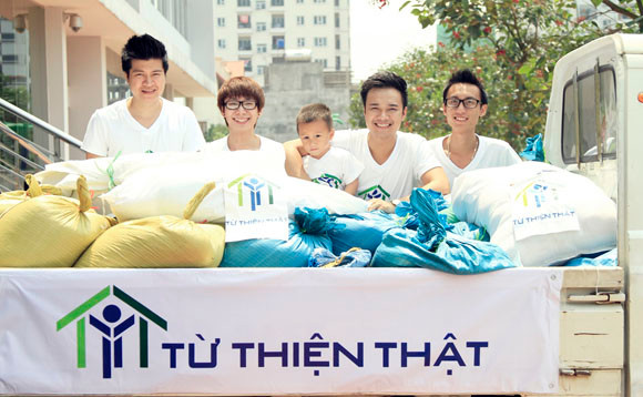 Và giúp đỡ nhóm Từ thiện thật đóng gói, vận chuyển những bao gạo