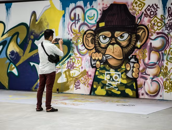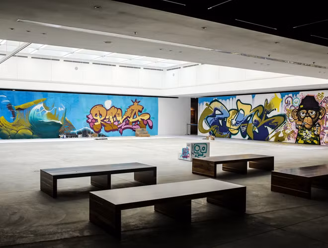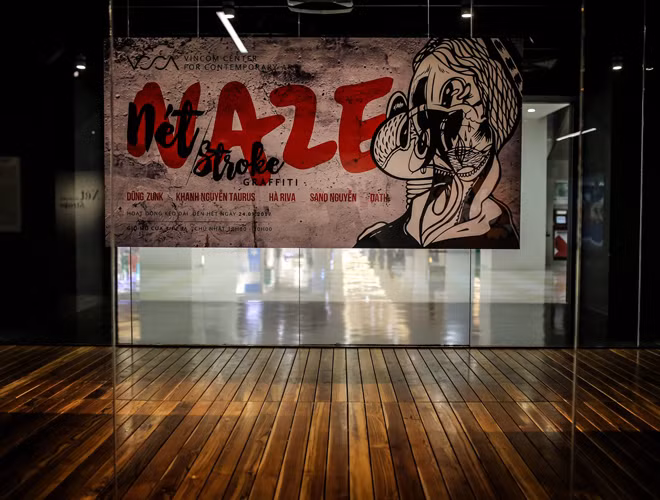 ANTD.VN -Chỉ trong khoảng thời gian ngắn, không gian quanh khu giếng trời độc đáo của Trung tâm Nghệ thuật Đương đại Vincom (VCCA – Royal City, Hà Nội) đã “lột xác” hoàn toàn với những bức tranh tường rực rỡ và kỳ bí do nghệ sĩ đương đại Nhật Bản – Naze – cùng nhóm các họa sĩ graffiti trẻ Hà Nội sáng tác trực tiếp.