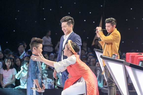 Tiếp đến, “Fashionista nhí” Chu Tuấn Ngọc với ngoại hình đáng yêu và cực chất trong bộ trang phục cá tính nhưng lại thể hiện một ca khúc đầy tình cảm "Con có mẹ rồi". Khi bấm ghế xoay lại, Noo Phước Thịnh đã “mắt chữ A, mồm chữ O” ngạc nhiên trước sự đáng yêu của Tuấn Ngọc.