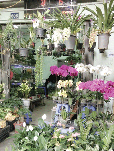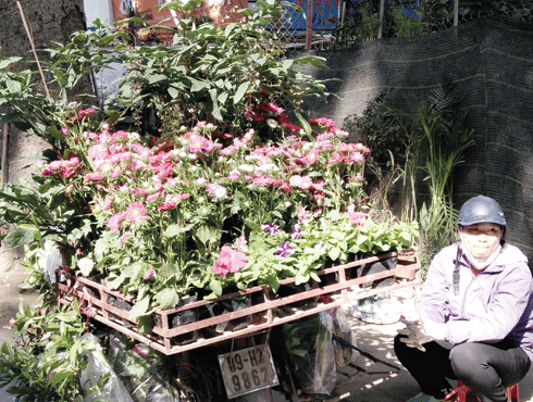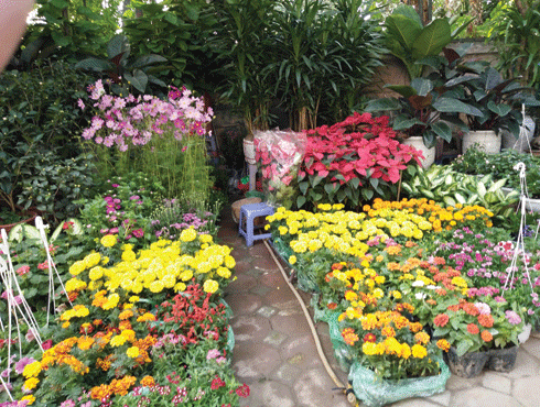Bạt ngàn hoa: nào là sắc đỏ của râm bụt, thược dược, trạng nguyên, mào gà, hồng, lựu; màu trắng của bó cúc trà mi, hoa hồng, thủy tiên, hoa nhài; màu tím của những chậu dã yên thảo, đinh tử hương, cẩm tú cầu, thạch thảo và điểm thêm vài sắc hồng phai của những cành đào và ánh vàng từ bông mai…
