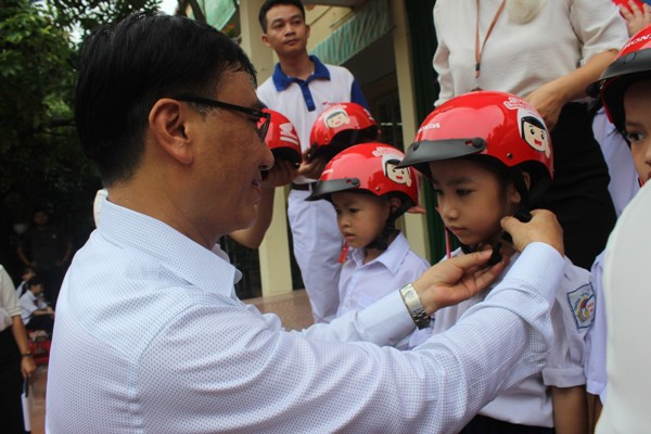 Tại buổi trao tặng mũ bảo hiểm, các thầy, cô giáo và các phụ huynh, học sinh đã được nghe những kỹ thuật viên của Công ty Honda Việt Nam tuyên truyền về tác dụng của việc đội mũ bảo hiểm khi ngồi trên mô tô, xe máy; cách thức chọn, đội mũ bảo hiểm đạt chuẩn, đảm bảo an toàn.