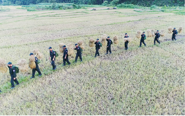 CBCS Trung đoàn CSCĐ Tây Bắc giúp dân gặt lúa