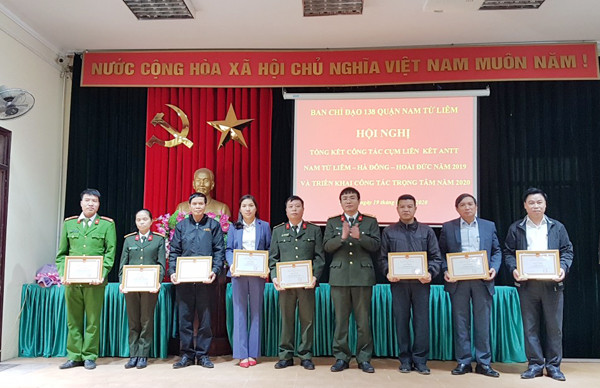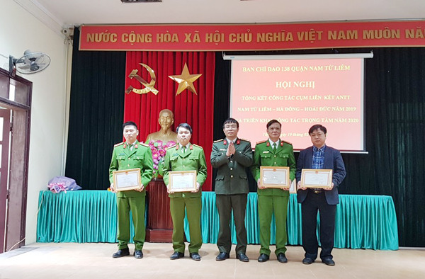 Thượng tá Nguyễn Song Toàn, Phó trưởng Phòng Phong trào toàn dân bảo vệ an ninh Tổ quốc tặng Giấy khen của Giám đốc CATP cho các tập thể có thành tích trong đảm bảo ANTT cụm liên kết