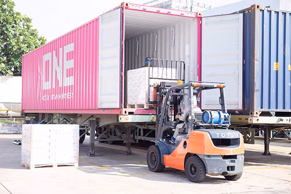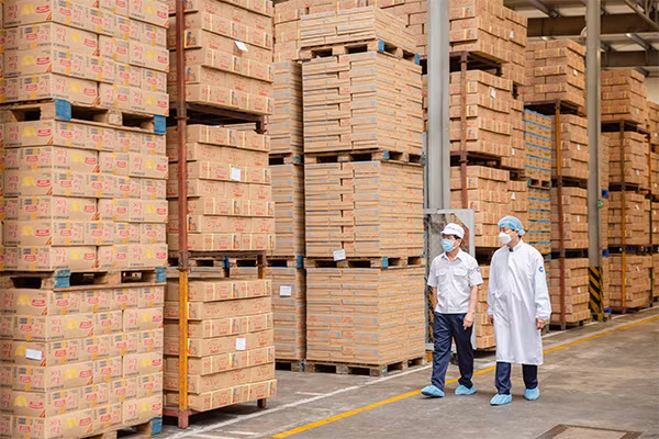Lô sản phẩm sữa đặc Ông Thọ được đưa vào container chuẩn bị xuất đi Trung Quốc từ Nhà máy sữa Thống Nhất của Vinamilk