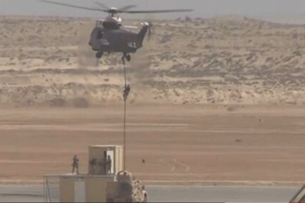 Cuộc tập trận có sự tham gia của máy bay chiến đấu và tàu đổ bộ. Binh lính luyện tập đổ bộ và nhảy từ trực thăng xuống.