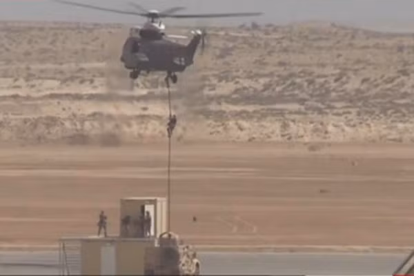 Binh lính luyện tập đổ bộ và nhảy từ trực thăng xuống