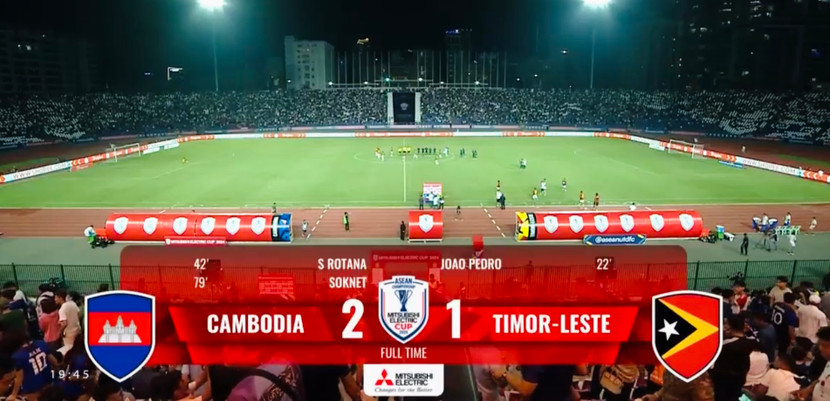 Thế trận áp đảo với tỉ lệ kiểm soát bóng lên tới 70%, số cơ hội dứt điểm gần gấp ba lần Timor Leste, chủ nhà Campuchia có bàn thắng quan trọng nhờ công Soknet ở phút 79.