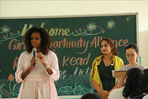 Trong khuôn khổ sự kiện, bà Obama cùng phái đoàn đã giao lưu với những cựu thành viên của chương trình hỗ trợ giáo dục cho nữ sinh, các em nữ sinh đang tham gia chương trình và tìm hiểu các lớp kỹ năng sống cùng nữ sinh; gặp gỡ đại diện các tổ chức phi lợi nhuận chuyên về hỗ trợ giáo dục trẻ em gái tại Việt Nam; thảo luận các giải pháp nhằm giúp đỡ, phát triển tiềm năng cho trẻ em gái vị thành niên thông qua giáo dục cho nữ sinh trường THPT Cần Giuộc…