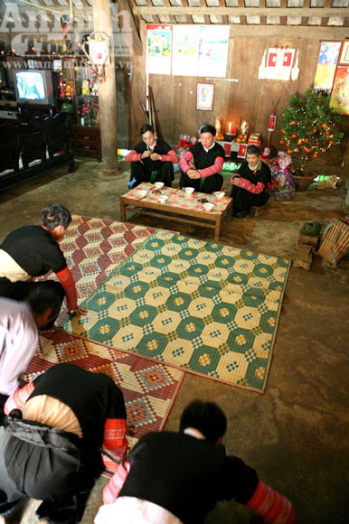 Chiếu trải sẵn ở gian giữa nhà thật trịnh trọng. Bố vợ ngồi ghế trên để cho con rể Páo vái chào và biếu lễ vật. Sau khi bố vợ nhận lời cảm tạ, Páo phải trở về nhà làm một lễ khác quan trọng không kém. Đó là lễ cảm tạ những dụng cụ lao động. Trước khi xuân đến, gia đình Páo, và tất cả đồng bào Mông ở Mộc Châu đều làm thế. Họ phải rửa sạch cày, cuốc, dao… những dụng cụ lao động thường ngày mình dùng. Rồi mang những dụng cụ để dưới bàn thờ giữa nhà làm lễ cúng tế. Bao giờ cũng vậy, họ cảm tạ trời đất, sau đến những vật dụng nuôi sống họ.