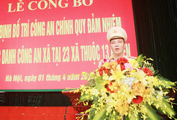 Tại lễ công bố, thừa ủy quyền của Giám đốc CATP Hà Nội, lãnh đạo Phòng Tổ chức cán bộ đã công bố Quyết định điều động 23 Trưởng CAX, 34 Phó trưởng CAX và 80 Công an viên về đảm nhiệm chức danh CAX tại 23 xã.