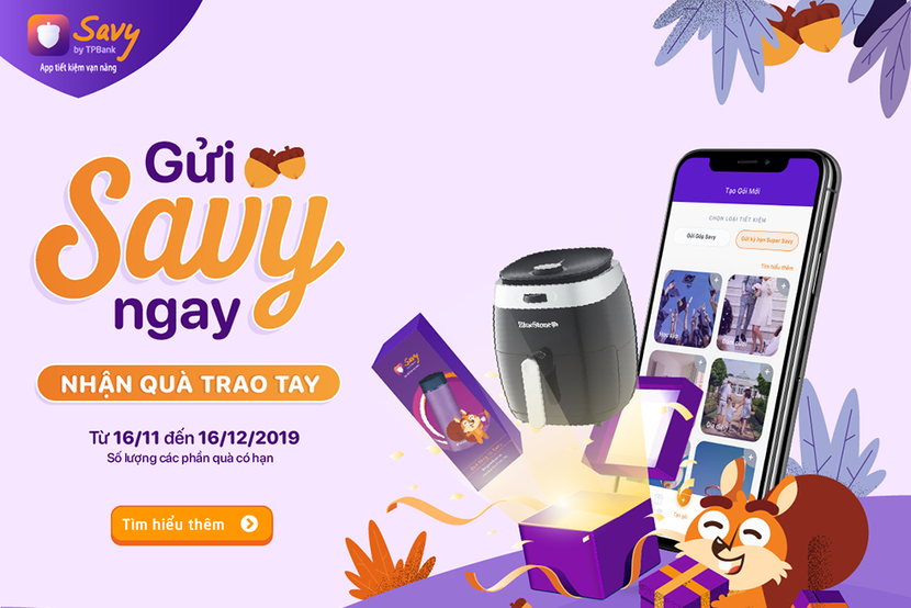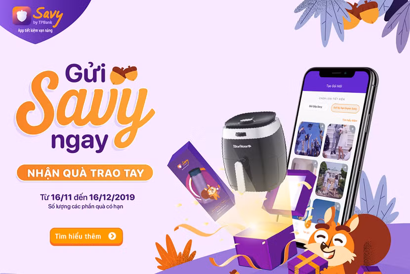 Nếu “chậm chân” chưa kịp nhận quà trong chương trình lần trước thì cũng đừng vội buồn vì TPBank sẽ dành đến bạn thêm một cơ hội nữa để sở hữu những quà tặng giá trị, tiện dụng này khi tiếp tục gia hạn chương trình “Gửi Savy ngay – Nhận quà trao tay”.