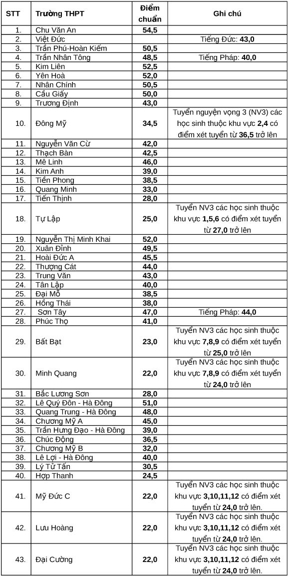 Căn cứ vào điểm chuẩn trúng tuyển, Hiệu trưởng các trường THPT công lập tổ chức tiếp nhận học sinh trúng tuyển theo Quy chế tuyển sinh của Bộ GD&ĐT và Hướng dẫn tuyển sinh của Sở GD&ĐT Hà Nội.