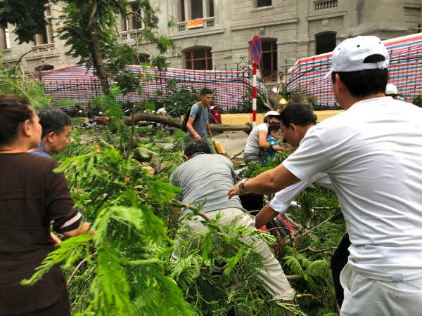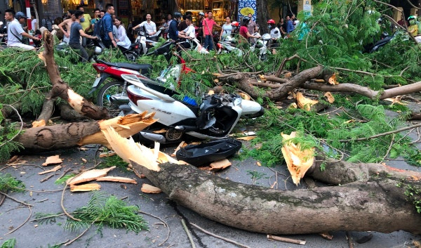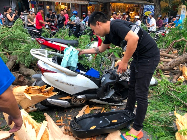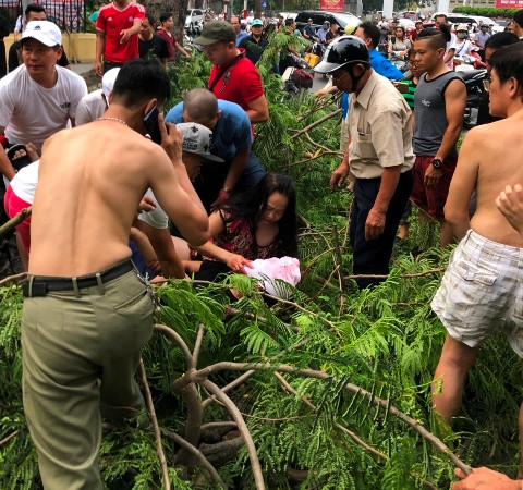 Theo một số nhân chứng, thời điểm trên, cây cổ thụ từ trong khuôn viên một cơ quan ở ngay nút giao thông này, bất ngờ đổ vật ra đường. Thân và cành cây ít nhất đè trúng 2 chiếc xe máy.