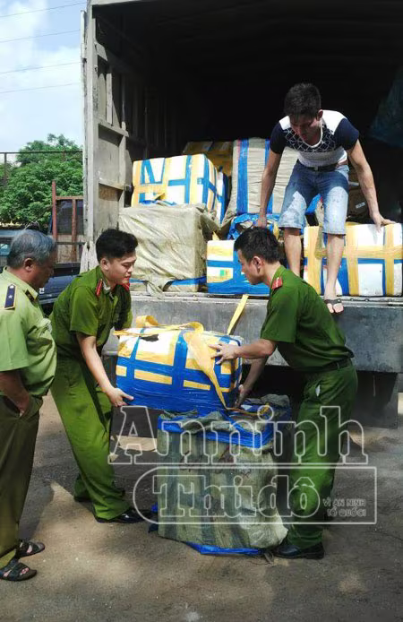 Lái xe Bùi Văn Hoàng, 21 tuổi, trú tại Tiên Lữ, Hưng Yên tại thời điểm kiểm tra không xuất trình được hóa đơn chứng từ chứng minh nguồn gốc 1,5 tấn thủy sản trên, đồng thời khai nhận, được thuê chở hàng từ Móng Cái, tỉnh Quảng Ninh về Hà Nội với giá 1 triệu đồng. Bao bì các kiện hàng đều in chữ Trung Quốc.