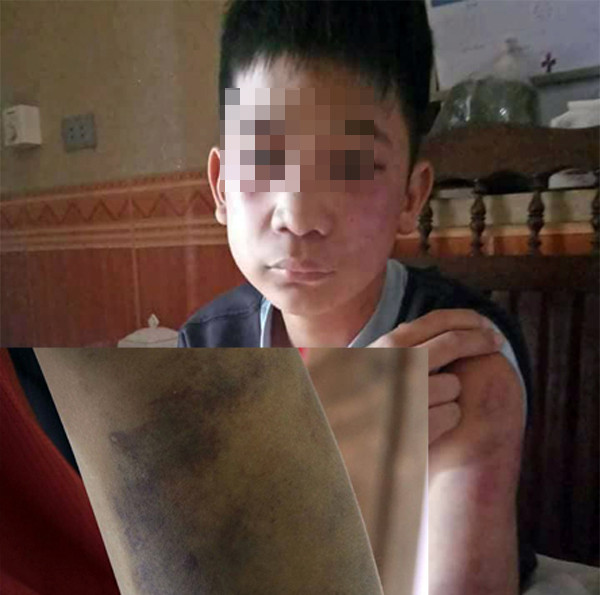 Ngày 31-3, trao đổi với phóng viên, ông Hoàng Đức Hồng (trú tại xã Liên Hà, huyện Đông Anh, Hà Nội) cho biết, tối ngày 27-3, cháu Nguyễn Lê Q (14 tuổi, cháu ngoại ông Hồng) sau khi được đón từ nhà bố đẻ về đã bị bầm tím khắp cơ thể, thậm chí có quầng đỏ quanh mắt.