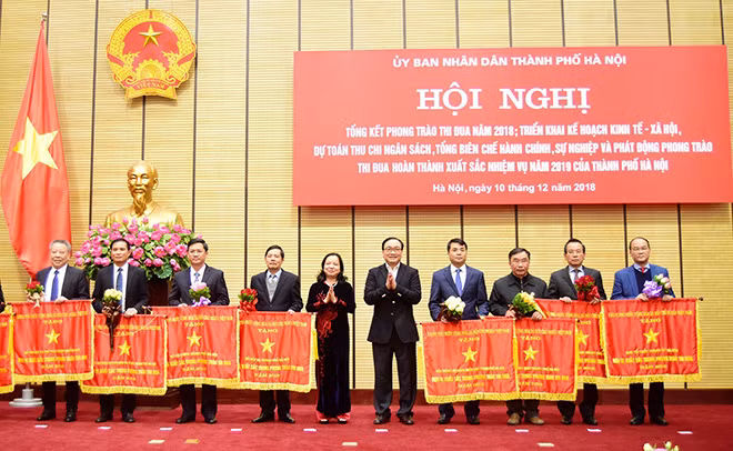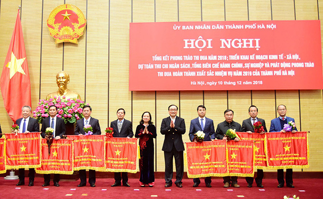 Sáng 10-12, UBND TP Hà Nội tổ chức Hội nghị Tổng kết phong trào thi đua năm 2018; triển khai Kế hoạch kinh tế - xã hội, dự toán thu chi ngân sách, tổng biên chế hành chính, sự nghiệp và phát động phong trào thi đua hoàn thành xuất sắc nhiệm vụ năm 2019.