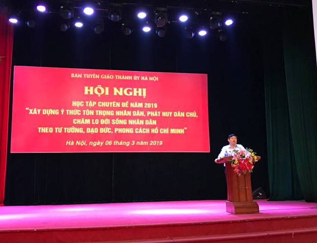 Tại hội nghị, Phó Trưởng ban Thường trực Ban Tuyên giáo Thành ủy Hà Nội Phạm Thanh Học đã quán triệt nội dung chuyên đề năm 2019 về “Xây dựng ý thức tôn trọng Nhân dân, phát huy dân chủ, chăm lo đời sống Nhân dân theo tư tưởng, đạo đức, phong cách Hồ Chí Minh”. Chuyên đề gồm 2 nội dung chính: Tư tưởng, đạo đức, phong cách Hồ Chí Minh về tôn trọng Nhân dân, phát huy dân chủ, chăm lo đời sống Nhân dân; Chủ trương của Đảng, nhiệm vụ và giải pháp xây dựng ý thức tôn trọng Nhân dân, phát huy tính dân chủ, chăm lo đời sống Nhân dân trong giai đoạn hiện nay.