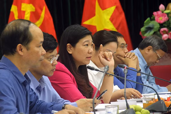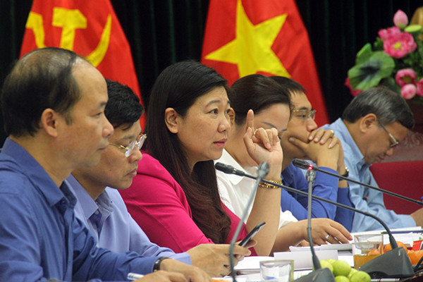 Trưởng Ban Dân vận Thành ủy Nguyễn Lan Hương phát biểu tại buổi làm việc với quận Ba Đình