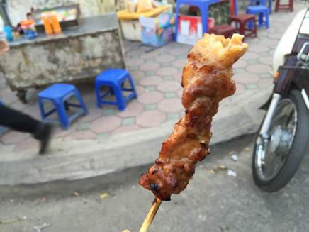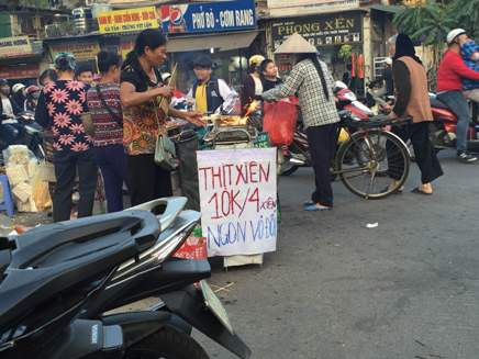 Thịt xiên được bán ngay trên vỉa hè, dưới lòng đường