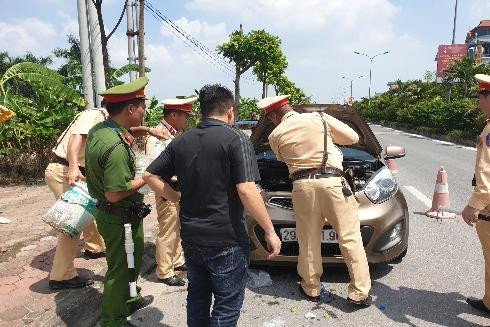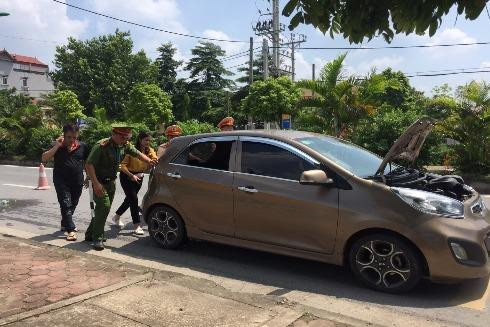 Khoảng 14h ngày 6/8/2019, tổ công tác của Đội Cảnh sát giao thông, trật tự, Công an huyện Thạch Thất, do Thiếu tá Chu Đức Thuỷ, Đội phó phụ trách, Thượng úy Nguyễn Minh Hải làm tổ trưởng cùng các CBCS đang thực hiện kế hoạch cao điểm về kiểm tra nồng độ cồn tại Km 7+400 tỉnh lộ 419, thuộc địa bàn thị trấn Liên Quan, huyện Thạch Thất thì phát hiện một chiếc xe Kia Morning đang bốc khói đen kịt phía đầu xe...