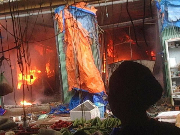 Đám cháy nhanh chóng thiêu rụi nhiều kiot quần áo, vải vóc