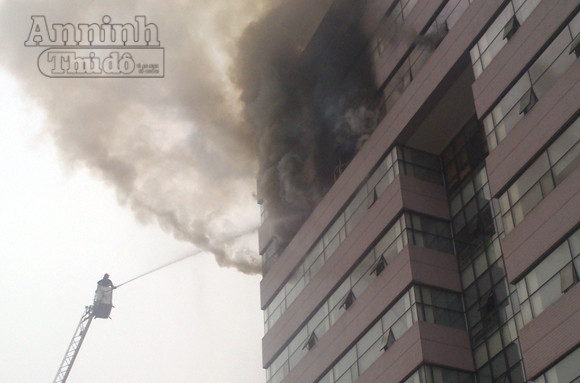 Xe thang đã vươn lên ngang tầng 9 để Cảnh sát PCCC phun vòi rồng, dập lửa. Một mũi chiến sĩ khác đeo mặt nạ phòng độc, thâm nhập vào bên trong tòa nhà....Hiện chưa xác định có bao nhiêu giảng viên và sinh viên mắc kẹt trong đám cháy, được biết dù hôm nay là thứ 7, nhưng nhà trường vẫn tổ chức cho sinh viên học tập bình thường.