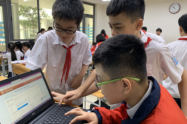 Học sinh trường Tiểu học Mai Dịch Hà Nội tìm hiểu các dịch vụ công trực tuyến