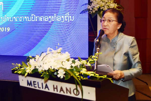 Chủ tịch Quốc hội nước CHDCND Lào Pany Yathotou phát biểu tại hội thảo