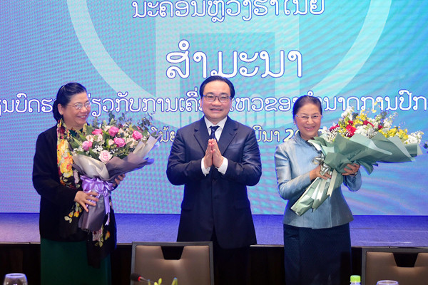 Chủ tịch Quốc hội nước CHDCND Lào Pany Yathotou, Phó Chủ tịch Thường trực Quốc hội nước CHXHCN Việt Nam Tòng Thị Phóng, Bí thư Thành ủy Hà Nội Hoàng Trung Hải đồng chủ trì hội thảo.