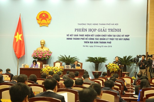 Chủ tịch HĐND TP nhấn mạnh: "Thông qua giải trình, chúng ta sẽ làm rõ những tồn tại trong tổ chức triển khai thực hiện các quy định của pháp luật về quản lý trật tự xây dựng trong thời gian vừa qua, từ đó xác định rõ nguyên nhân khách quan, chủ quan và trách nhiệm của từng cấp, từng ngành để đưa ra những giải pháp, biện pháp cần thiết nhằm nâng cao hiệu lực, hiệu quả công tác quản lý trật tự xây dựng trên địa bàn Thành phố trong thời gian tới".