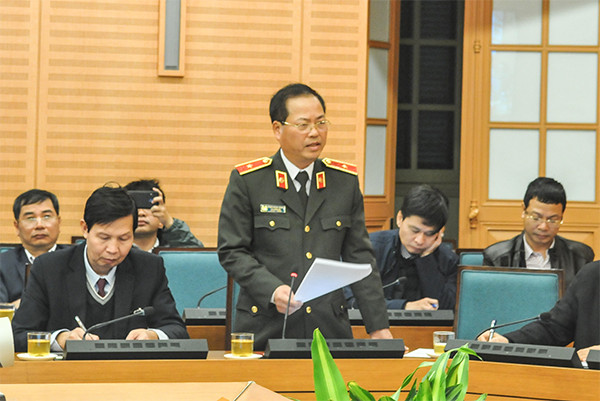 Thiếu tướng Đoàn Ngọc Hùng, Phó Giám đốc CATP Hà Nội phát biểu tại hội nghị