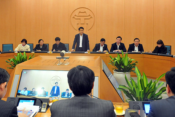 Chiều 5-2, thực hiện chế độ giao ban 2 ngày/lần, UBND TP Hà Nội đã tổ chức họp trực tuyến Ban Chỉ đạo của TP Hà Nội về công tác phòng, chống dịch bệnh viêm đường đường hô hấp cấp do chủng mới của virus Corona gây ra (nCoV). Chủ tịch UBND TP Nguyễn Đức Chung – Trưởng ban Chỉ đạo chủ trì hội nghị.