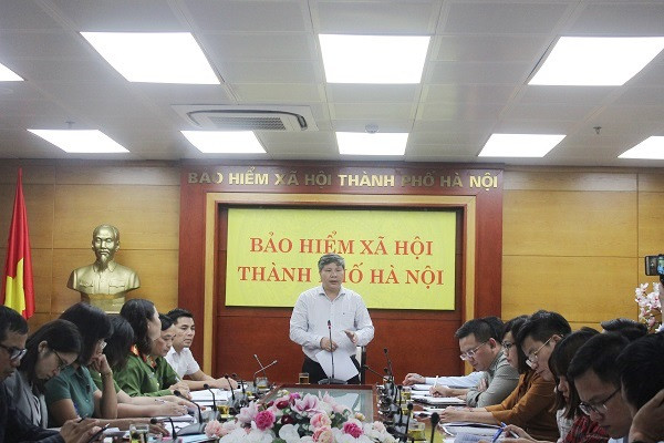 Giám đốc BHXH TP Hà Nội Nguyễn Đức Hòa chủ trì buổi làm việc