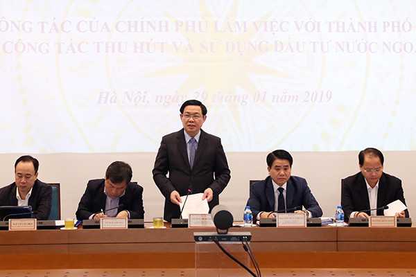 Phó Thủ tướng nhận định tốc độ huy động vốn FDI của Hà Nội tăng về số tuyệt đối nhưng tỷ trọng lại theo xu hướng giảm xuống, ngược chiều với các địa phương khác khi số thu hút đầu tư trong nước cũng tăng theo, đảm bảo phát triển bền vững.
