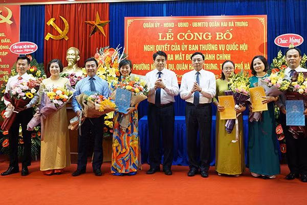 Phát biểu tại buổi lễ, Phó Bí thư Thành ủy, Chủ tịch UBND thành phố Hà Nội Nguyễn Đức Chung chúc mừng và biểu dương tinh thần trách nhiệm cao của đảng bộ, chính quyền, Mặt trận Tổ quốc, các tổ chức trong hệ thống chính trị quận Hai Bà Trưng, của Đảng bộ, chính quyền và nhân dân các phường thực hiện sắp xếp đơn vị hành chính.