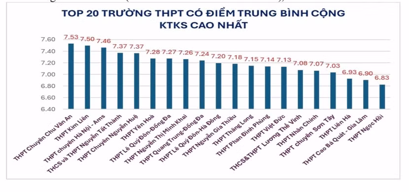 Đứng vị trí thứ 2 là Trường Trung học phổ thông Kim Liên (7,5); thứ ba là Trường Trung học phổ thông chuyên Hà Nội - Amsterdam (7,46).