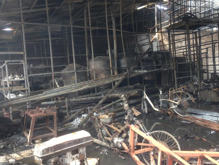 Lửa đã thiêu rụi nhiều đồ đạc trong các quán ăn, nhà xưởng