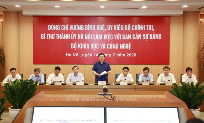 Chiều 14-7, Ủy viên Bộ Chính trị, Bí thư Thành ủy, Trưởng đoàn Đại biểu Quốc hội TP Hà Nội Vương Đình Huệ đã chủ trì buổi làm việc với Ban Cán sự Đảng Bộ Khoa học và Công nghệ (KH&CN) về kết quả phối hợp công tác giữa Bộ và UBND TP Hà Nội.