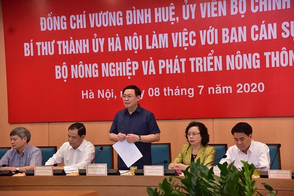 Phát biểu mở đầu, Bí thư Thành ủy Hà Nội Vương Đình Huệ cho biết, Hà Nội dù là Thủ đô, một đô thị đặc biệt nhưng nông nghiệp cũng có vị trí hết sức quan trọng. Hiện nay, 17 huyện, 1 thị xã và 6 quận của thành phố còn sản xuất nông nghiệp, diện tích đất nông nghiệp vẫn chiếm tới 58,3%...